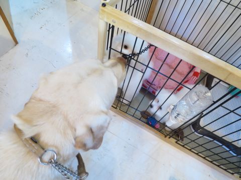 「こんにちは」 「なんでち?なんでち?」 「でかい!でかい!」 「でかいってあーた、れでぃーにしつれいね!」 ビションフリーゼ兄妹(ごろうまる&まるこまる)、ラブラドール・レトリバーのおんなのこちゃん / Sarasa(※)と初対面 自分の体の何十倍もの大きさのわんちゃんとの初対面に大興奮のビションフリーゼ兄妹(ごろうまる&まるこまる)なのでした 《 ビションフリーゼ 》 お誕生日:2015年9月 性別 :おとこのこ① おんなのこ① カラー:ホワイト ビションフリーゼのこいぬ...