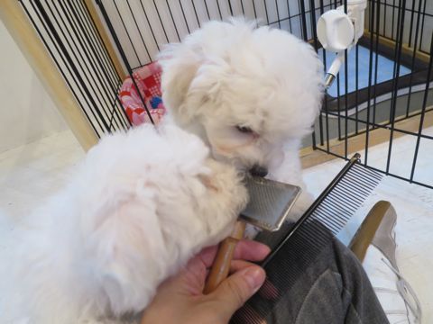 ビションフリーゼ兄妹、ブラッシング&コーミング。 わちゃわちゃしてますね(苦笑) でもやる時はちゃんとやる。 けじめが大事。 ブラッシング&コーミングは毎朝の日課。 幼少の頃からスリッカーブラシやコームに慣れることはとても大事なこと。 毎日のお手入れはとても大切。 ブラッシング&コーミングをおこなうことで、抜け毛やフケ、ほこりや汚れを取り除くことができます。 皮膚のマッサージ効果もあり、血行も良くなります。 毎日行うことで互いのコミュニケーションを取ることもでき...