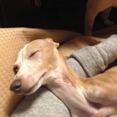 JUGEMテーマ:イタグレ 今日のペロちゃんは旦那の腕枕でウトウト。 パチクリ。起きちゃった? お、動き出した! と思ったらヌボーっ・・・。 腹へった。なんかよこせ。
