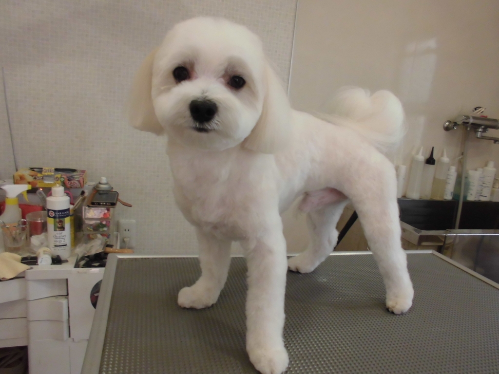 JUGEMテーマ:マルチーズ Maltese 蘭丸くん。 伸びた毛をスッキリカットしてサッパリ。 真っ白ピカピカになって、まん丸お顔でかわいくなりました。 また、次回お待ちしています。 杏子ちゃん。 伸びるのが早い杏子ちゃんも体はスッキリ、足はブーツカットでお洒落さんになりました。 ふちどりした耳に、キノコちゃんリボンがとってもお似合い。 ワイン、ごちそうさまでした(^O^) おいしくいただきます! また、次回お待ちしています。