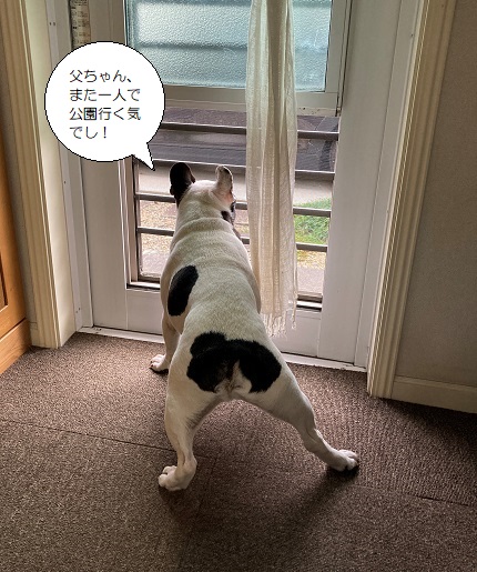 JUGEMテーマ:フレンチブルドッグ 父ちゃんが仕事に出掛ける朝は、毎度吠えまくっているこびさん。 月曜日の朝は、特に騒がしい。 玄関で吠え、勝手口で吠え・・・と忙しい。 どうしてもひとり出掛けて行くのが許せないらしい。 (絶対、公園に遊びに行ってると思ってる) しかし姿が見えなくなると 諦めは早く ピタリと吠えるのを止め、さっさと朝寝の準備をするのでした。 *余談* ...
