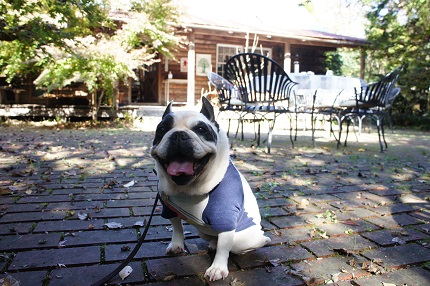 JUGEMテーマ:フレンチブルドッグ 「COBINとランチ」キャンペーン中の我が家。 昨日は、佐野市の中心地から20キロ程離れた山あいにある 「Cafe Blossom」に行って来ました〜。 林の中に佇む古き良きアメリカンスタイルのログハウス。 オーナーのお爺さんのアメリカンな雰囲気も相まって、 ここだけ日本じゃないみたい。 テラス席はワンコOK!ワンコWelcomeなお店です。 レンガ敷きのテラス席もゆったりして良さそうだけど、 我々は屋根付きテラス席に案内...