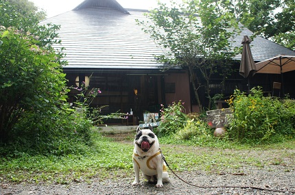 JUGEMテーマ:フレンチブルドッグ 日曜日、ちらっと那須に行って来ました〜。 こびんも入れる「古民家のカフェ夢屋」でランチ。 雑木林の中にある静かなスローフードのカフェです。 (150年前の奥会津の古民家を移築したそうな) テラス席もあるけど、店内もワンコOK♪ 因みに、ちゃぶ台の畳席や囲炉裏を囲む土間席もあって昭和レトロな雰囲気。 今回はテーブル席がひとつだけ空いていたので、こちらで。 黒板メニューからガレットとランチプ...