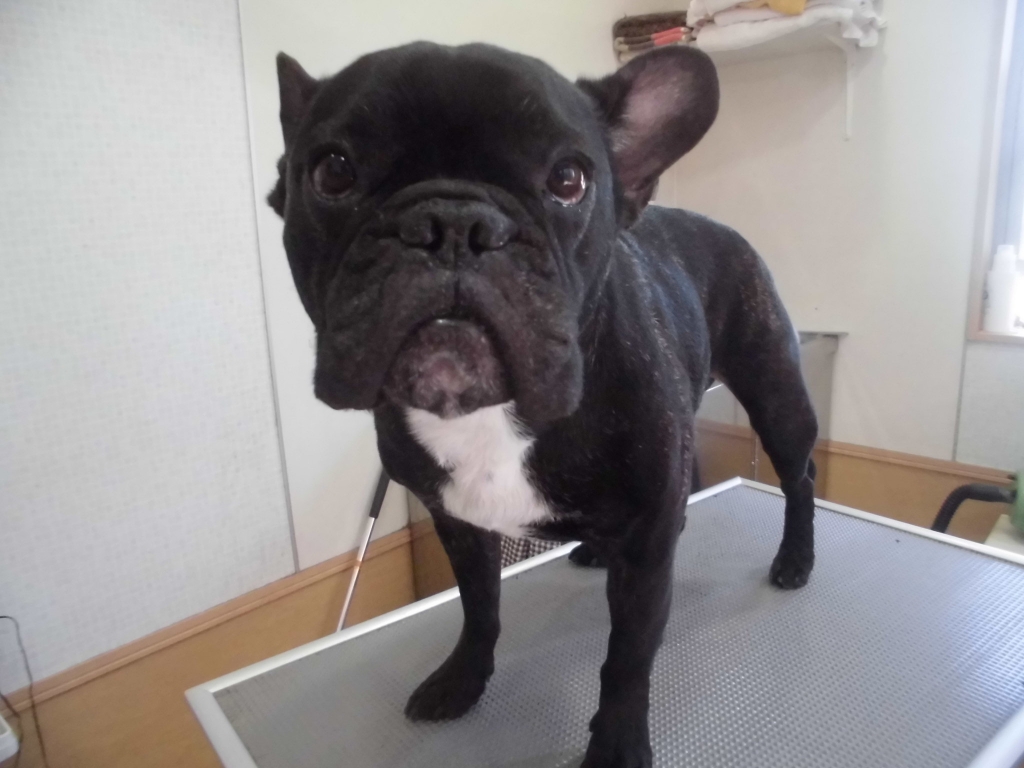 JUGEMテーマ:フレンチブルドッグ テオくん。 真顔が凛々しいテオくん。 今日も泥パックで汚れもスッキリ、サラサラになったよ✨ アンちゃん。 トリートメントシャンプーで、毛もサラサラいい香りだよ〜。 お顔もスッキリカットして、しっぽもポンポンで可愛さUP💗 また、次回お待ちしています。