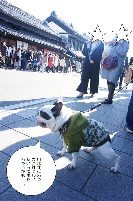 JUGEMテーマ:フレンチブルドッグ 昨日は、川越に遊びに行きました〜。 蔵造りの街並みが美しい一番街は、人、人、人・・・人の波。 所どころ、こびんを抱えないと危険なくらい。 川越ってこんなに人気だったんだ〜(゜o゜) 一番の目的は、雑貨屋さんの「はまのや」。 マム店長がお出迎えしてくれました♡ 14?(ぶちょうと同じ位だ!)の大きめBIHIちゃん。 落ち着きと貫録があります。 こび...