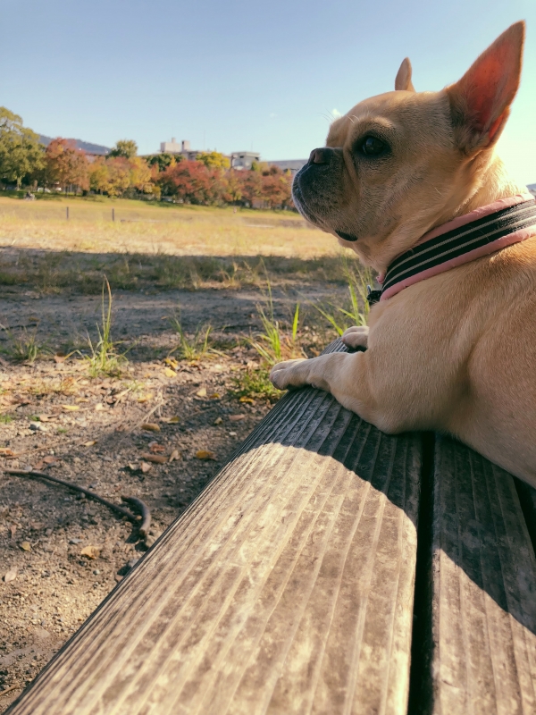 JUGEMテーマ:フレンチブルドッグ こんにちわ。 ドッグカラーリストのmanicoです。 鴨川のベンチでひとやすみ。 お天気なのは今日まで。 明日は雨の予報の京都です。 いいお天気なのに、ホントかな〜? 先日の日曜日、 つゆちゃんが胃腸の調子が悪くごはんを吐くので病院へ。 ...