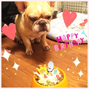 イギ兄さん、5月29日で元気に9歳になりました〜❤❤❤ めでたい、めでたい♪ヽ(○'∀`○)ノ 娘たちとわんこケーキ作ろうと思ったら、なんか、スゴいものが出来上がってしまった、、、 ケーキの要素とごはんの要素を融合させようと手抜き心を起こしたのが失敗のもと!? (ちなみに、ごはんとおかかでケーキ土台作って、水抜きしたヨーグルトでコーティング、星型ハート型で抜いたバナナとキウイをトッピングして周りにフードをちりばめ、さらに焼き魚をトッピング、、、もう世界観がカオス...