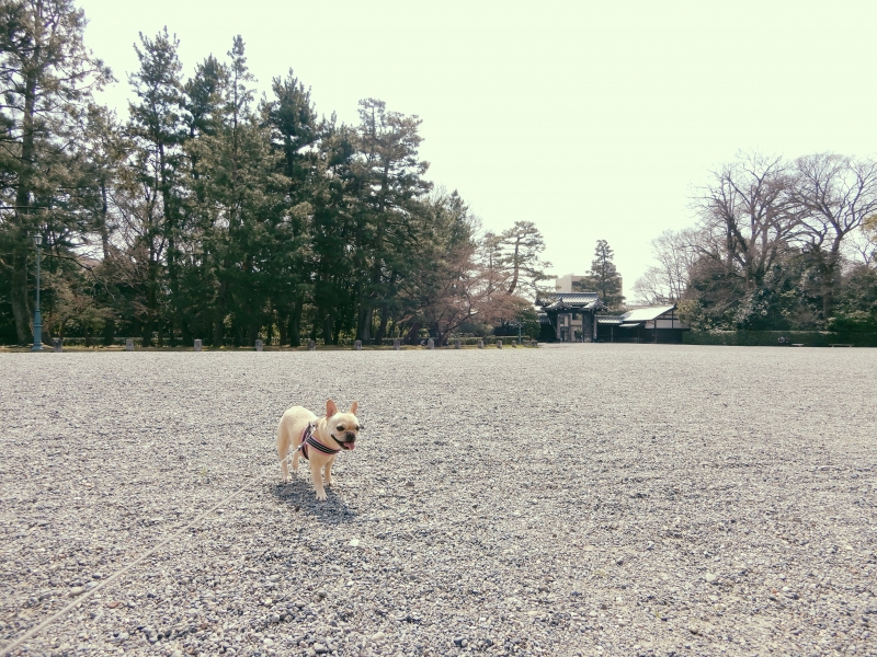 JUGEMテーマ:フレンチブルドッグ 小春日和な京都御苑。 ぐるり歩いて来ました。 ぐるり1周すると、だんだん暑くなってきました。 あそこに見えるのは、ハンちゃん? 昼過ぎになると、陽射しが強くなって来て、、 堪らず、みかんの木の下へ避難してきたのです。 日陰は涼しい!! でも。 これだけ陽射しが強いと、ハンちゃんにはちょっとしんどいね。 ...