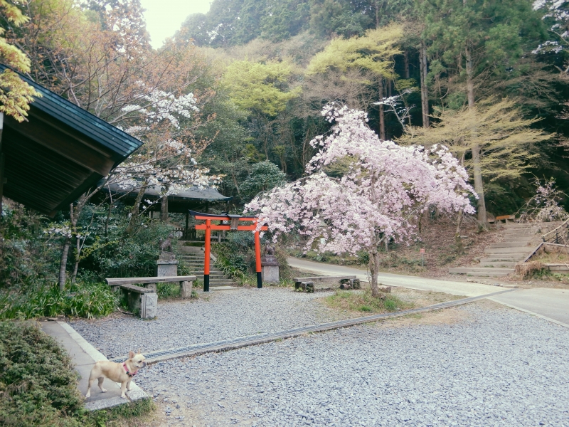 JUGEMテーマ:フレンチブルドッグ 日向大神宮の裏から、粟田山へ。 鳥居の横のしだれ桜が満開でした。 山に入ると、山つつじの花がたくさん! 春は、山中も華やかです。