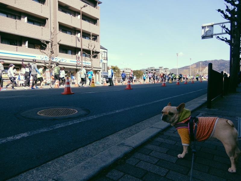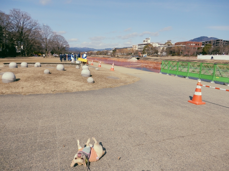 JUGEMテーマ:フレンチブルドッグ 京都マラソンのあと。 昨日は、天候にも恵まれ最高のマラソン日和だったのではないかな。 13時ごろには、徐々に交通規制が解除され、うちの近所もいつも通りに。 車道に車が走っていたので、ハンちゃんとお散歩に行きましたよー。 いつもの鴨川は、、 なんだか雑然としていて、人も多い。 京都マラソンのスタッフの方々が、後片付けをしていました。 さらに北のほうへ。 すっきりと片付いていま...