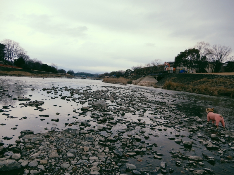 JUGEMテーマ:フレンチブルドッグ 冬の鴨川。 昨日は暖かかったので、油断していました。 また、厳しい寒さに逆戻りです。 ハンちゃんは、寒さもへっちゃら。鴨川の自然を楽しみます。 すんすんしながら、川を下ってゆきます。 この辺りには、ヌートリアという大きなネズミが住んでいて、 匂いを追跡するのが、ハンちゃんの楽しみなのです。 すんすんすんすん。。。。 茂みを分け入り進む...