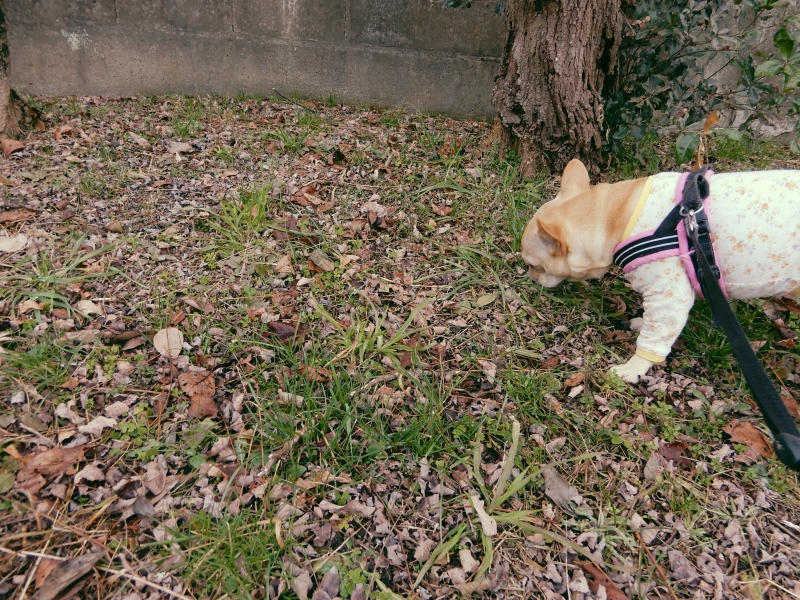 JUGEMテーマ:フレンチブルドッグ 好きな草を探すハンちゃん。 夏の間は、たくさんたくさんそこら中に生えていたのに。。 枯葉の中から探します。 細〜くて、長い大好きな草。み〜っけ! もぐもぐ。 すんすん。 むしゃむしゃ。 はっ!なんだか不満顔のハンちゃん。 春がきたら、ハンナの大好きな草いっぱい生えてくるからね!! 楽しみができたね。ハンちゃん...