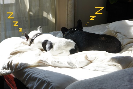 JUGEMテーマ:フレンチブルドッグ 今日もふとんの上で、よく寝ているぶちょうさん。 ここ最近、お水をよく飲むようになった。(元々飲まないひとなのに・・・) 元気なんだけどね。 腎臓の機能が低下してるのかも・・・。 近いうち病院行って検査してもらおう。 こびさんは、昨日から階段下でキュンキュン言って、 抱っこして2階に連れて行けと言う。 いつもは軽やかに階段を走り上がるんだけど・・・。 かと言って、どこか怪我...