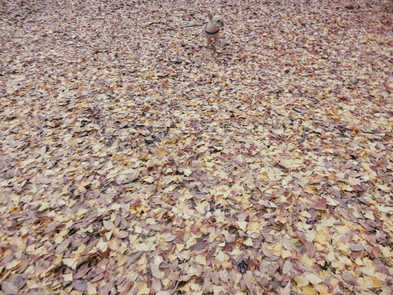 JUGEMテーマ:フレンチブルドッグ ハンちゃん、どこにいるでしょうか? 紅葉のもみじやいちょうの葉はすっかり散り、いつものおさんぽ道はふかふか!落ち葉の絨毯です。 ハンちゃんは、落ち葉と同化するクリーム色。 まだ少し、紅葉が残っていました。 秋の気配がどんどん薄くなり、冬が始まる手前。 ふかふか落ち葉と、紅葉のオレンジ色が、 ほんわか暖かくハンちゃんを包み込んでくれるよう。 ...