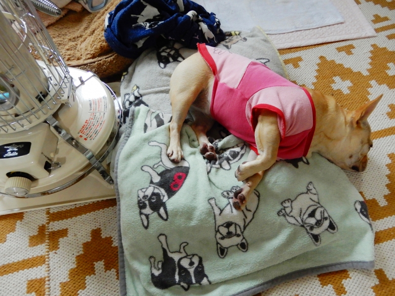 JUGEMテーマ:フレンチブルドッグ 京都市。朝から雨で冷え込みます。 ストーブの点火と共に ”ストーブの守り神様”もベッドの部屋からやってきます。 朝から、ぽかぽかで二度寝のハンちゃん。。。。爆睡! 子犬の頃から、寒さが苦手で火傷が心配になるくらいストーブにへばりついていました。 相変わらずですね〜。 6歳と8ヶ月。 まいにち変わらず10?ほどを小走りし、与える食事はもりもりとたいらげ、引っ張って遊び。を、おね...
