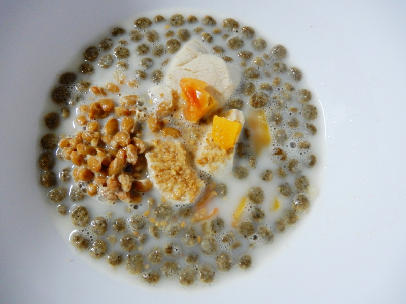 JUGEMテーマ:フレンチブルドッグ 鳥の胸肉とトマト、秋野菜(かぼちゃ・ごぼう・えのき茸)のミルク煮 基本のドッグフードと一緒に食べさせている手作りスープのタンパク源として、鳥の胸肉をよく使います。 フレッシュな鳥の胸肉、卵黄と納豆・貝割れ大根・サーモンオイルのごはん いつも、ささみ部分か胸肉を使用。皮の部分も一緒にあげています。 油分が少ないので消化に良いのです。漢方の考え方では、鶏肉は体を温める食材です。 この時期、冷え性のハンちゃんにし...