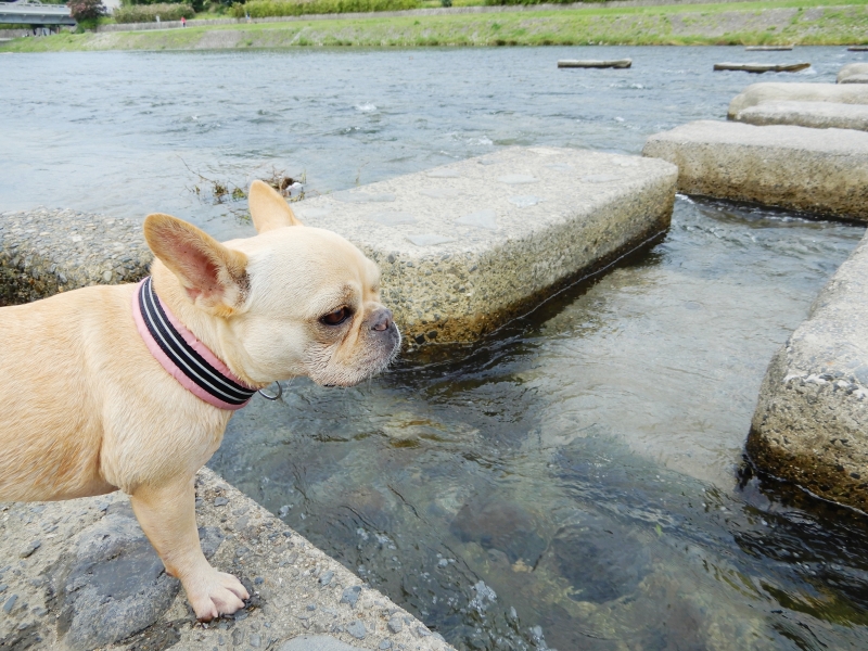 JUGEMテーマ:フレンチブルドッグ 9月も過ぎて、まだ蒸す京都です。 真夏と比べると朝・晩は、ずいぶん涼しくなりましたが、7?ほど歩くので体が熱くなってしまいます。 なので、ハンちゃんは鴨川に入ってクールダウンしています。 泳げないので、足の届く場所で楽しんでいます。 川から上がるといつものごろん。 泥だらけになるので、あまり入って欲しくないのですが。。 この気持ち良さそうな顔!! ...