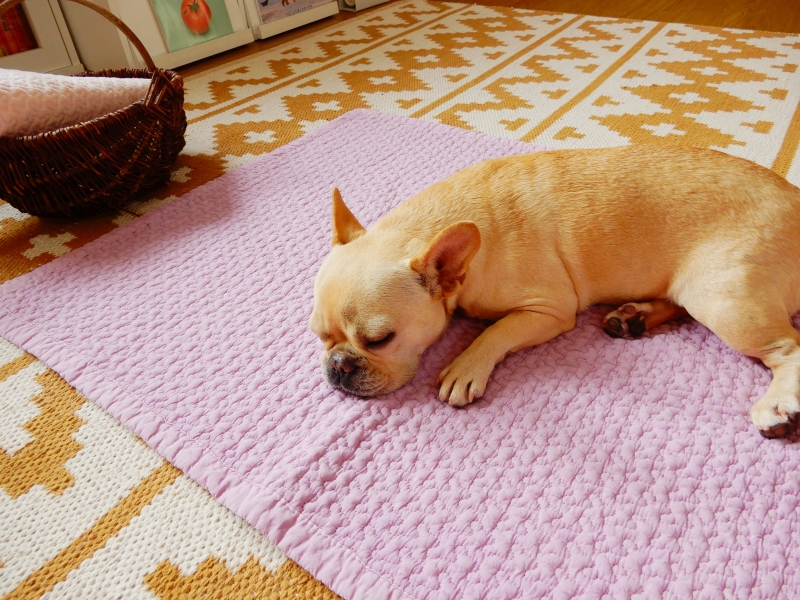 JUGEMテーマ:フレンチブルドッグ ハンちゃんの歯磨きや、マッサージ、肉球のお手入れは、このケアマットの上でやります。 コットン100%で肌触り抜群!ハンちゃんも、大のお気に入りなのです。うっとりしていますね〜。 このマットは、『イブル』という韓国のお布団なんですよ。 中綿の入ったキルティングのこの布は、適度にクッション性もあり、何度洗っても新鮮なサラサラ触感なのです。 ナチュラルな風合いの優しい色みが、なんだかホッとします。 ベビーマットとしても良く...