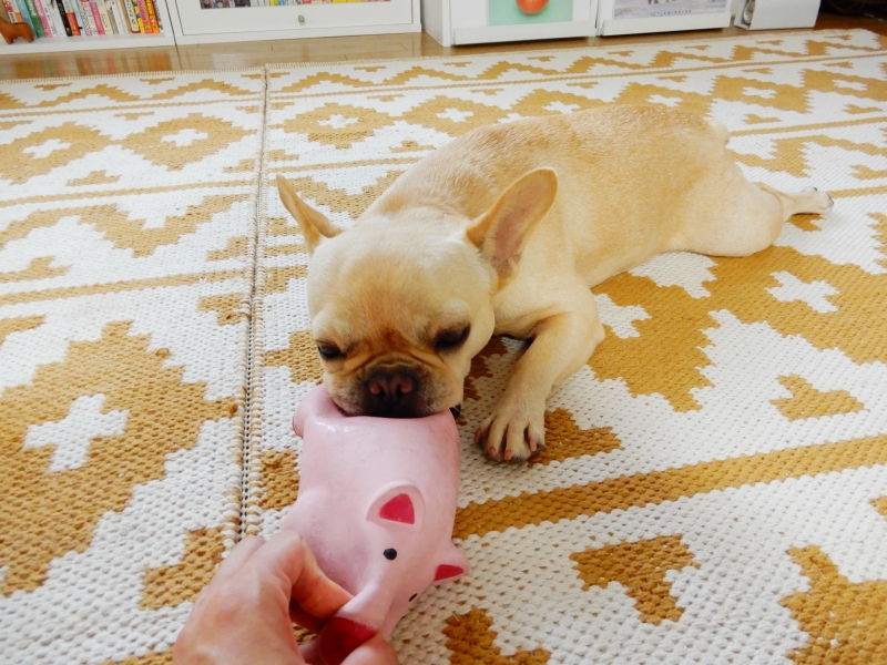 JUGEMテーマ:フレンチブルドッグ ハンナの毎日の日課は、引っ張りっこ遊びです。 おもちゃカゴから、その日の相棒を選んで持ってきます〜。今日はブタさん。 先日、ハンナのかかりつけ医の先生とブルちゃんあるある〜で盛りあがりました。 先生も、ボストンテリアと暮らしていてよく引っ張りっこ遊びをするそう。 ブルドッグやブルテリアなど、闘犬からの系統の遺伝子を持つ鼻ぺちゃワンコたちは、その名残か引っ張りっこ遊びが好きな子が多いみたい。同じ鼻ぺち...