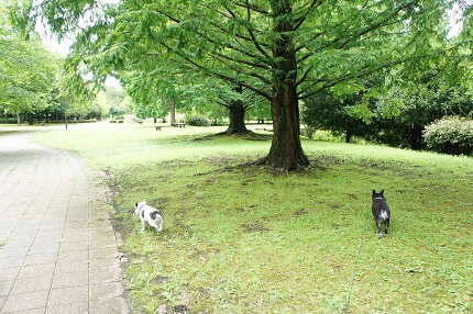JUGEMテーマ:フレンチブルドッグ 日曜日の長岡公園。 暑くて、さすがにワンコも人も少ない。 木陰はちょっとだけ暑さがマシなので、なるべく木陰を選んで歩く。 木の下には、大量の蝉の抜け殻が! 見れば葉っぱに鈴なりの抜け殻!! 夏真っ盛りですね〜。 暑くてすぐバテるけど、やっぱりお散歩は楽しそう。 ぶちょう、いい笑顔♪ こびんも、いい笑顔だ♪ さて、シャンプー後のこび...