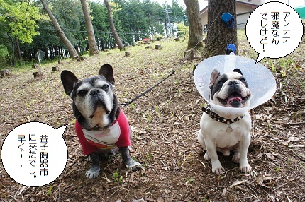 JUGEMテーマ:フレンチブルドッグ こびんのアンテナ君生活=エリカラ生活も、かれこれ7週間。 こんなに長くなるとは・・・。 ゴールデンウィーク中もアンテナ君。 益子陶器市に行ったら、アド街ック天国効果か?! ものっ凄い混んでいた。 アンテナ君では人混みは歩けないだろうと、外してみる。 こびん、快適そう。 いつも立ち寄るお店「G+00」で、BUHI柄バッグを色違いで大人買い♪ このお店、BUHI柄雑貨に出会える率高しで、お気に入...