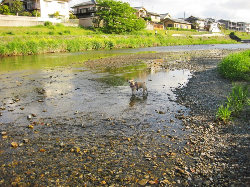 JUGEMテーマ:フレンチブルドッグ あんまり暑いので、鴨川で水あそび。 水が冷たくてきもちいい! 人もまばらな、朝の特別な時間。 何かを見ています。 鴨。 鴨さんにロックオン! 泳げないハンナ。。鴨さん逃げていきます。 浅瀬なら、積極的に。...