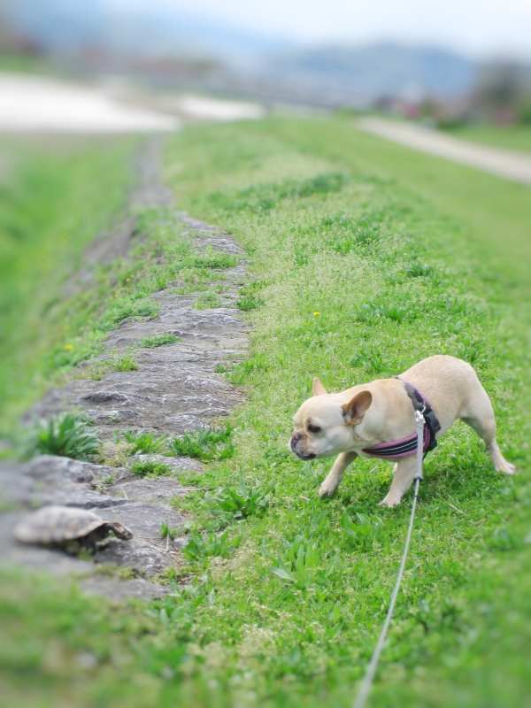 JUGEMテーマ:フレンチブルドッグ 亀! 大雨のあとの鴨川は、流れが急! 亀さんも岸へ避難です。 怖いのに。気になる。。。 亀さん、動かない。。。。でも!怖い。 亀の石も見えないようです。 中洲へは渡れません。 次の日。 少しだけ、水かさが減りました。 亀の石が泳いでるみたい!