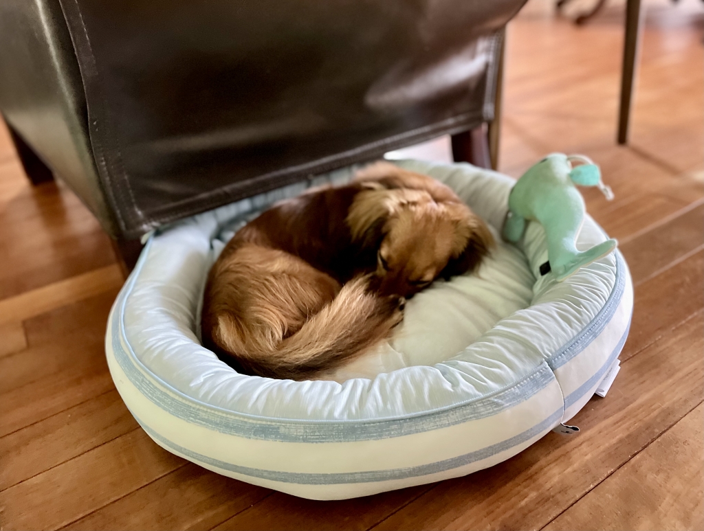 JUGEMテーマ:いぬのきもち 今朝のお散歩はよく歩きました。 風がよく通るリビングで気持ちよくお昼寝するマーシーです。 いつの間にかなまずさんが顔に乗っかっていました。 夢の中でなまずさんと仲良く遊んでいるのかな? おててが時々、前後に動いていました。