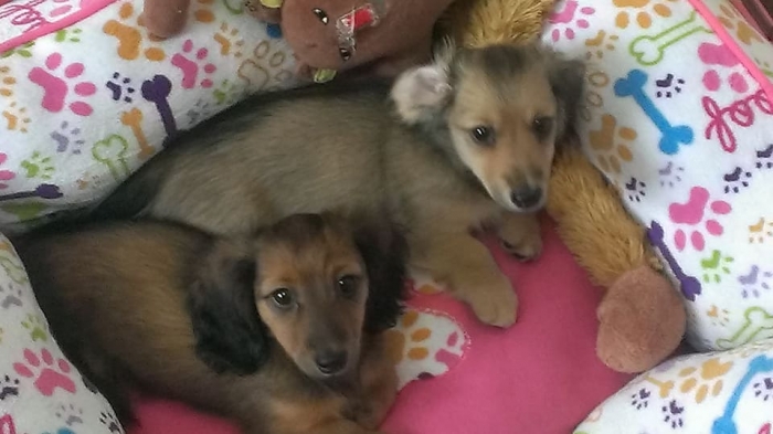 JUGEMテーマ:ロングヘアード カニンヘン ダックスフンド 1日2食、離乳食を食べながら、ママの母乳も飲んでいます。 ハウスから出てきて、うろちょろする時間が多くなり 遊び癖がつきました(笑) 左が男の子で、クッキー Sレッド ママのキャンディにそっくり 右が女の子で、シナモン Sイエロー です。