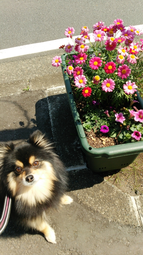JUGEMテーマ:ポメラニアン 朝のお散歩で気がついたの かわいいお花が置いてあるの いくつかの種類があるのが嬉しいね
