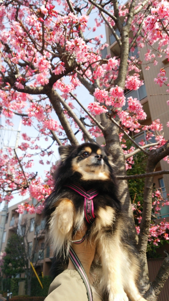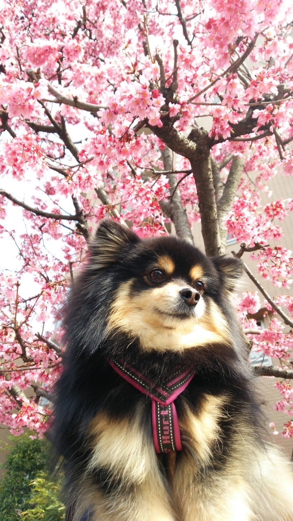 JUGEMテーマ:ポメラニアン 早咲きの桜が満開になりました。 濃いピンクの桜も 淡いピンクの桜も満開! 毎年個人宅のこの木を撮る人がたくさんいるのよ〜。 お花見わんちゃんもいたのよ