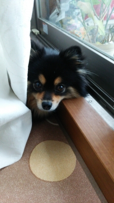 JUGEMテーマ:ポメラニアン 昼間、暗い所に行くかのようで 実は明るいカーテンの裏 夜はカーテンの裏から顔だけちょこっと出しとく