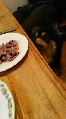 JUGEMテーマ:ポメラニアン ご飯をのぞこうと にょきっ て立ち上がったぽんちゃん 椅子に手までかけて見たいのか?