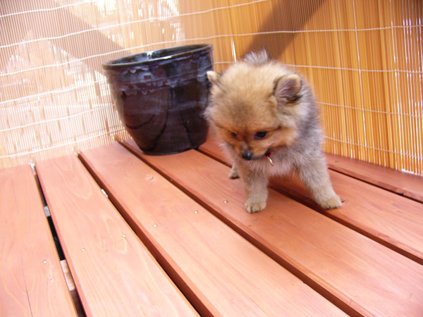 ポメラニアンのポメリンの初めての外出はウッドデッキです。 散歩の前に少しでも外の空気に慣れてもらうためにウッドデッキに出したのですが、緊張して全然動けませんでした(笑) にほんブログ村 JUGEMテーマ:ポメラニアン