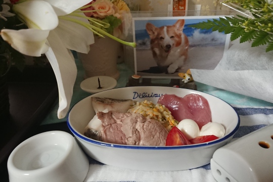 JUGEMテーマ:愛犬 コーギー 昨日は、桃右衛門の1周忌でした。 1年も経ったなんて、まだまだ実感がなく・・・ ご飯も毎日あげたりしていて。。。 やはり、私の独身時代から一緒の桃右衛門はかけがえのない存在で。。。 結婚してから我が家に来た、小春&向日葵&椿とは違う存在。。。 いつでも私の味方だったね! 本当に、語りつくせないくらいの有難う。。。 私のところへ来てくれて有難う。。 〜大好きなご飯〜 全部好物(鮭 鮪 鱈 ラム トマト モ...