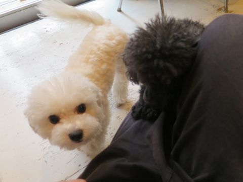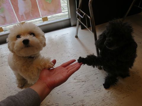 Cハーイ!ワタシ、クリームイイマス!キョウハトリミングニキマシタ! Yドウモ!ワタシハヨツバ!シッポブンブンゲンキナカタデスネ!