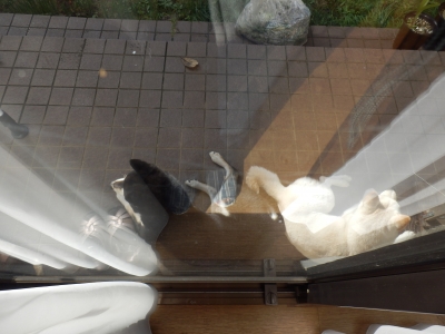 JUGEMテーマ:愛犬のいる暮らし 朝、リビングのカーテンを開けたら ティベとサニアがいたよ。 ふたりで仲良く日向ぼっこ? 玄関に回ったら ふたりで先回りして待ってたよ。 ちょっと〜、早く散歩に連れて行きなさいよッ! おとーさん、早く〜! 柵が開いているけど、 中には入らず待っている、よいこのティベとサニアでした。 おしまい。