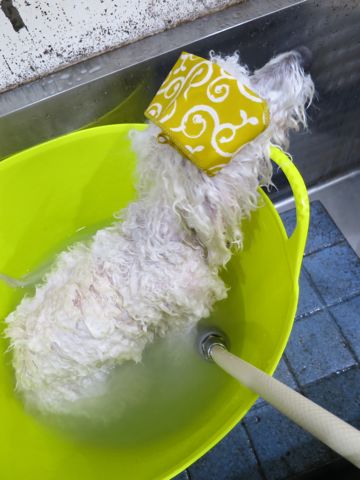 いっい湯っだっなん あははん なんと、当店の床下から温泉が湧きました やったねー 天然温泉です さっそく工事して、店に温泉引きました あははん …と、温泉湧いたは冗談ですが、天然温泉始めました ビションくん / MUKKU、温泉初体験 頭に手ぬぐいのっけたり きもちよさそ〜 あははん 温泉とっても気持ちよかったみたい ビションくん / MUKKU、最高の笑顔 キラキラキラ〜ッ 【 trimming note 】 顔 :丸くなるように ボディ:13mm 脚 :太めに 腹バリ:す...