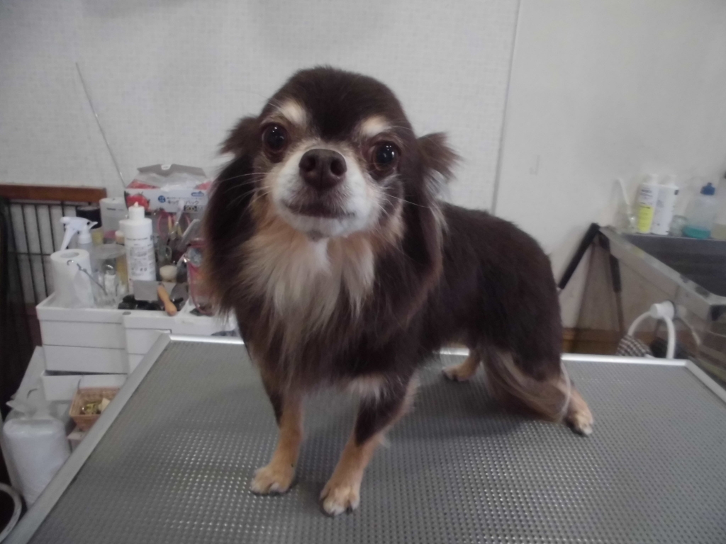 JUGEMテーマ:*チワワ* ニコニコからの〜、真顔になったユズくん(#^^#) 今日もトリミング頑張ったよ〜。 また、次回お待ちしています。