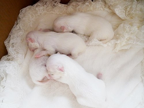 次女ちゃんの両目が薄っすら開きました 昨日くらいから、うん?何か切れ目が出て来たかなって感じで、いつ開くのかな〜と楽しみにしていました まだほんの少ししか開いていませんが、一番のりです 全体的におチビさんめなんですが、姉妹が多いのと、ママも2キロくらいの子なので、お乳足らないのかな?とか心配もするのですが、お腹はぽっこりしているので、ママにしっかりご飯を食べてもらって、このまま母乳のみで様子をみようと思います 長女ちゃんのアイラインが一番濃くて、...