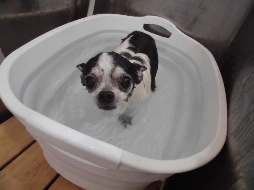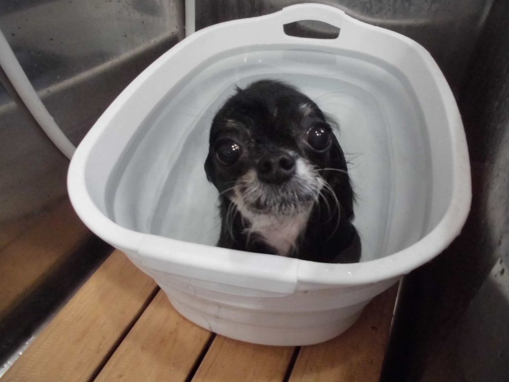 JUGEMテーマ:*チワワ* ユズくん。 キャンペーンの重炭酸イオン浴で、気持ちよく浸かってるユズくん。 毛が柔らかくなって、皮膚も毛もサラサラになりました。 また、次回お待ちしています。 クウちゃん。 重炭酸イオン浴で、掛湯をしながら、半寝状態のうっとりクウちゃん。 気持ち良くなって、笑顔もバッチリだね。 また、次回お待ちしています。