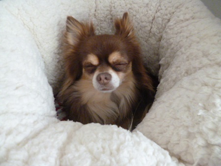 JUGEMテーマ:*チワワ* 「おはようさん 」 「ママ〜 お膝に座らせてよ 」 「やだね ちゃんとママのお目目見なきゃ」 「チッ」 「これでどうよ」 「ちょっと焦点あっていないけど・・・ま、いいか」 「へへ〜〜ん お膝ゲ〜〜ット 」 「もうひと眠りしようっと・・・じゃね 」