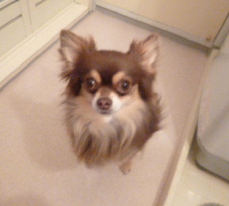JUGEMテーマ:*チワワ* 来た来た・・・・ チョコが来た 歯磨きしてたら チョコが来た チョコは歯磨き粉の香りが大好き 「ママ〜〜〜 オイラも〜〜〜 」 「お願い〜〜〜〜 」 だめだめ、これはママの歯磨きです お口キレイキレイが大嫌いで いつもガブママとケンカするのに 私が歯磨きをしていると どこからともなくやって来ます チョコちゃんっておもしろいね〜
