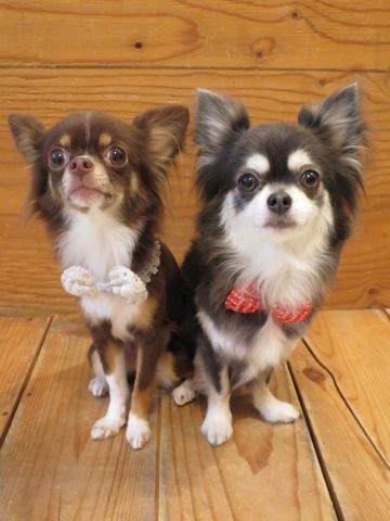 かわいい〜 かわいい〜 かわいい〜 なかよし〜 なかよし〜 なかよし〜 ブルー?グレー?カラーのチワワちゃん / Julia チョコタンカラーのチワワちゃん / Alice レアカラーチワワちゃん's キマリにキマってます 【 trimming note 】Julia & Alice 顔 : ボディ: 脚 : 腹バリ:する 尾 : ヒ ゲ:(&マユ)カット 耳 : その他:お尻短く丸く バースデー割引 _ HAPPY BIRTH MONTH; お誕生月のトリミングはバースデー割引(通常料金より15%OFF)にて承らさせていただ...