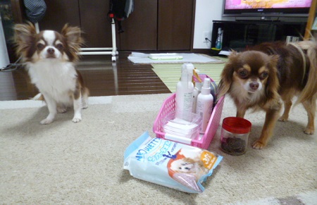 JUGEMテーマ:*チワワ* さぁ〜〜 ブラッシ、ブラッシだよ〜〜〜 集合してくるワンパクたちです ブラッシングが好きなのではなく ご褒美のおやつがもらえるから来るだけなんですけれど・・・ お怒りのご様子ですが シャンプータオルできれいきれい チョコちゃん、気持ちいいですか グルーミングスプレーがちょっと怖いレオン君 おりこうさんに頑張りました おひげカットもして ワンパクたち、イケメ...