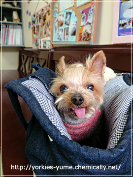 JUGEMテーマ:ヨークシャテリア ユメ:体重測定、2.45kg 体温測定、38.2度 年にいちどのフィラリアのお注射 首の後ろにぶすっといただきましたー! 朝いちの予約が取れたので 朝早くから痛いことしてしまいました。(笑) 診察台ではいつものようにブルブルだったけど 注射が終わったら リヨンちゃんママさんからいただいた このバッグがあるから 機嫌が直るのは早かったです。(・∀・) ♪