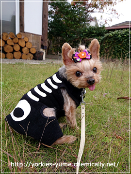 JUGEMテーマ:ヨークシャテリア トトくん。 レーシーハットで、シックなハロウィン仮装のトトくん。 ハロウィンリボンでかわいくなりました。 右目、早く良くなりますように。 また、次回お待ちしています。 あーりんちゃん。 ハロウィン仮装がとってもお似合いのあーりんちゃん。 レーシーハットで、笑顔も最高だね。 また、次回お待ちしています。