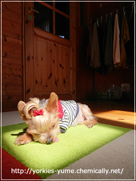 JUGEMテーマ:ヨークシャテリア ユメタン:ジリジリ 昨夜ユメちゃんの舌が やたら肉厚に見えて 「牛タンならぬユメタンだね」 なんて話をしていたんですが。 秋間近のちょっぴり寒かった今朝。 日向ぼっこをさまよう ユメちゃんの姿が見られました。(笑) あったかそう。 ジリジリ。 ジュージュー? あ、タンが焼けてんな、と 思っただけです。 すみません、ユメ先生。(笑) ■麦わら帽子状況 ・発送済...