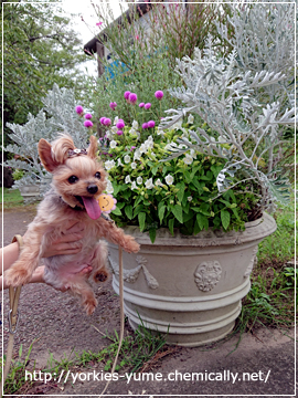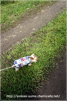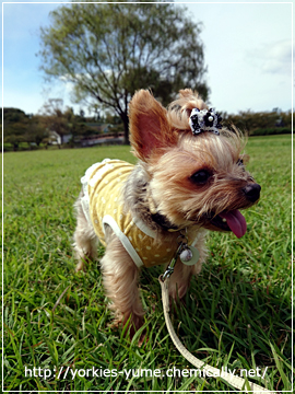 JUGEMテーマ:ヨークシャテリア ユメ:やっほーーー。 ユメちゃんのお庭で おサンポでーす。 いつもの天グリは ちょっとだけ秋っぽく。 私のお仕事が明けたので お天気に誘われてやって来ました。 歩いていると暑いくらいの いいお天気! 保育園の子供達が遊びに来ていて 周りの音が気になり過ぎなユメちゃん。 休憩であげたボーロも おくちから落としました。。。(笑) 暑くて脱がされまして、 ...