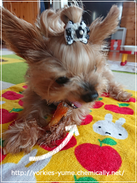 JUGEMテーマ:ヨークシャテリア 今日は午後からママミングしました。 いつも途中でゲロっちゃうので 今日はおやつの時間よりも前に開始。 極力全身をバリカンで。 足を持ち上げたりして工夫して。 おかげさまでゲロったりせず(笑) 2時間コースでした。 ちょんちょりんこも切りました。 ご褒美の梨を食べたら いつものおやつ。 なんか今日はバリバリッて食べてて そして後ろ足の踏ん張りがすごくて 勇ましい食べっぷりでした。 (・∀・) ...